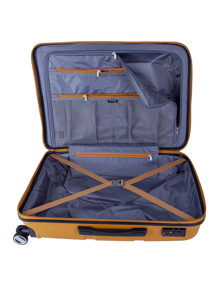Whatever your destination, the ideal companion is the Cruze Hardshell Trolley Case to ensure you have ample space for all you need. There are 4 wheels for easy mobility and an integrated TSA lock for convenient security. Cellini Cruze hardshell luggage is manufactured in vibrant blue, marigold, black, and orange to add an element of colour and fun to your travel accessories. The items in this range also have the advantage of a 5-year warranty.