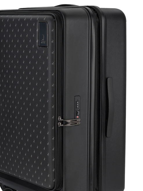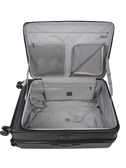 Pack all you need for any travel adventure using the Large 4-Wheel Trolley case in Black and Sage. The interior is fitted with straps, mesh zip compartments and a privacy pouch to easily store and locate important items while the integrated TSA lock offers security and peace of mind. Reach for the stars with the Polo Orion hardshell luggage collection which has been crafted using Polycarbonate to offer outstanding impact resistance, durability and flexibility. This collection meets the demands of modern travel and maintains its sleek appearance even after frequent use. The instantly recognizable and highly desirable Polo logo on the front adds an element of understated elegance.