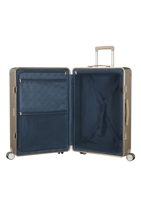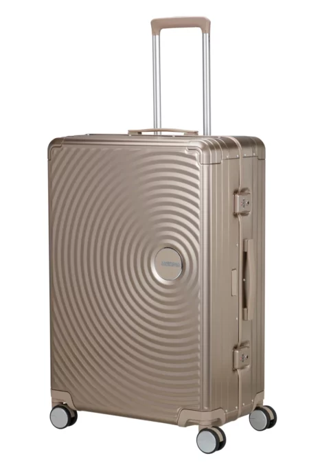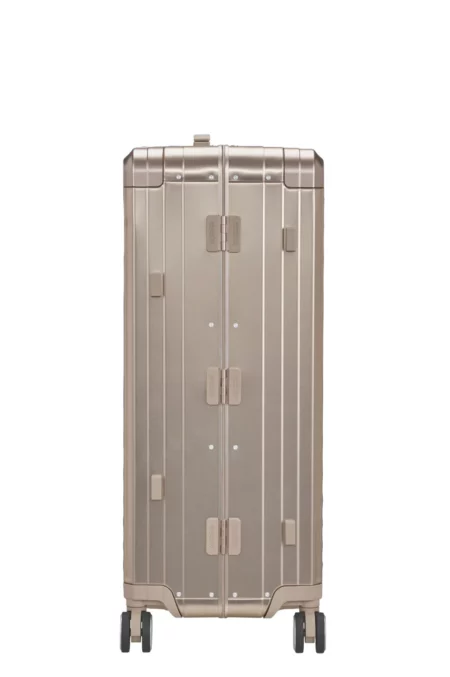 The Soundbox Alu 77cm: iconic design, unmatched performance. This case comes equipped with ergonomic one-click TSA combination locks, smooth 3-ball bearing wheels, interior dividers and cross-ribbons and so much more. Made from anodised aluminium this durable case can withstand the demands of travel providing protection for your belongings.
