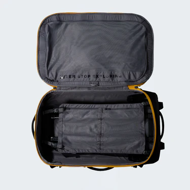 Super-tough and versatile, the Base Camp Rolling Thunder 28″ blends both mountain durability and high-level organisation for frequent flying or weekend adventures. Its 95-litre volume is roomy enough for the average two-week holiday or a gear-loaded weekend adventure. And being made from ultra-durable recycled Base Camp fabric with an improved hard-shell chassis designed to handle travelling around the world over and over again, it stands up to long-term, rugged use – just like its predecessor. The custom-moulded wheels make light work of rolling, even on gravelly terrain. Webbing compression straps let you secure belongings or compress the bag when it’s not full. And padded side and top handles are super-comfortable and allow for multiple carrying positions. There are tonnes of pockets for travel essentials and dirty clothes, as well as webbing points that allow you to clip on additional items. If you need to save space, you can push down clothing using the internal compression panel. Plus, to keep valuables safe, the zip is lockable, giving you peace of mind when your main focus is the end destination.