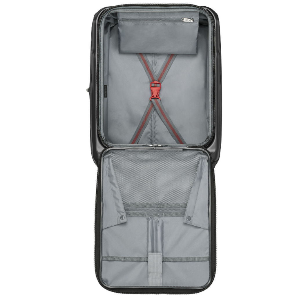 Secondary Compartments: Carry-On features an easy-access front panel cavity for laptops and tablets, allowing quick access without opening the main compartment.